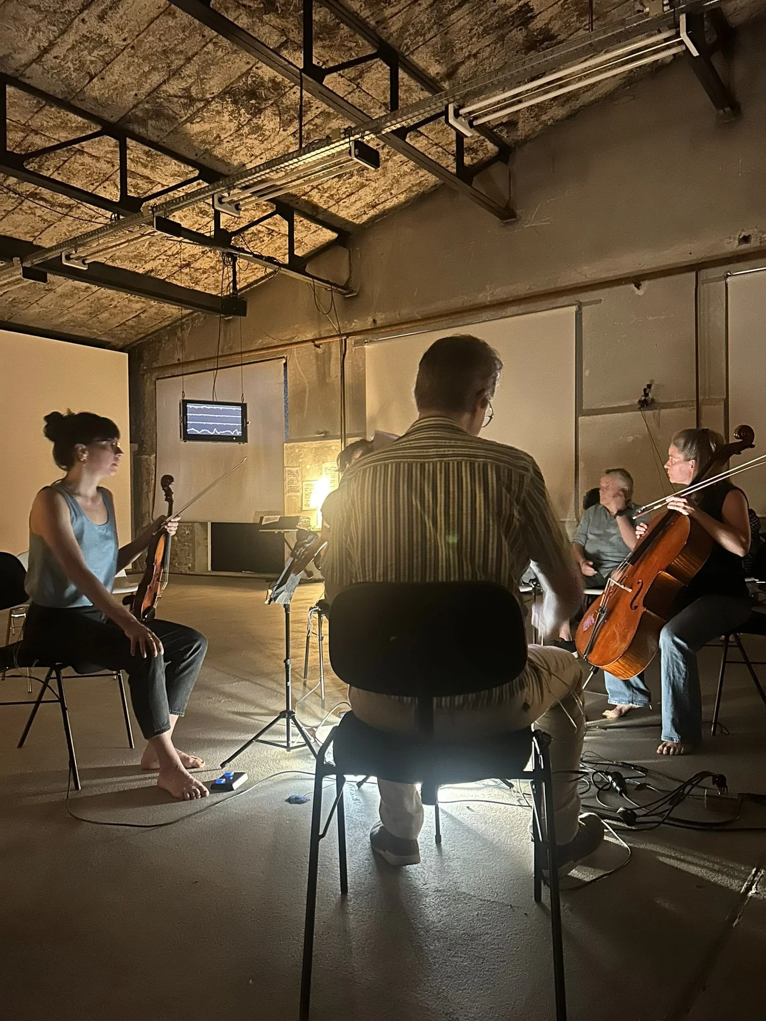 EXHIBITED MUSIC is an audiovisual and multisensory performance featuring the KNM Quartet. Brian Ferneyhough’s String Quartet No. 2 is time at its most compressed. The British composer is known for placing the highest demands on performers. EXHIBITED MUSIC unfolds this time again and exposes what would otherwise remain hidden: the individual work of the four musicians, their joint rehearsals, their emotional state during the performance…